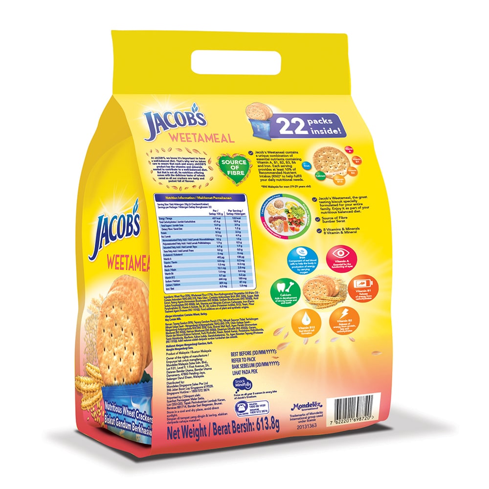 Jacob's 精心挑选了独一无二的维生素和矿物质组合,旨在提升健康益处(维生素 A、B1、B2、B3、B12、钙、铁和碘)。正因如此,一代又一代的马来西亚人都信赖并喜爱 Jacob's。